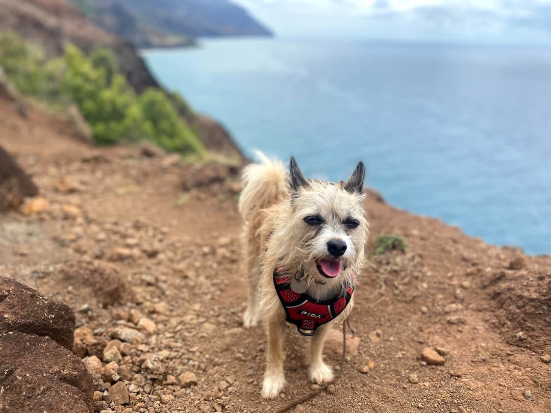 So I set off! Hiked the 11 miles and 6K vertical feet in 10 hours including breaks. Shimmied around Crawler’s Ledge, the notoriously dangerous part of the trail, with Eevee bounding out to the edge of the cliff, harnessed to my waist, mimicking the mountain goats she admired throughout our hike. I ate freshly fallen mangoes off the forest floor and drank from streams without a filter after mile 6. My phone broke early on in the hike. When I finally made it to Kalalau, I was welcomed by strangers who fed me and gave me hot water and suggested I try sleeping on the beach under the stars, which I did.